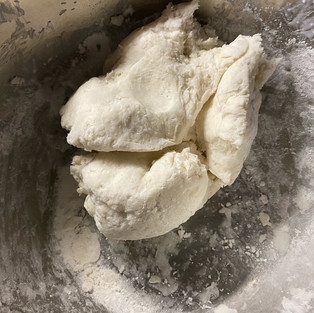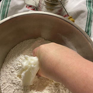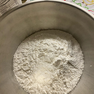 Sift Flour and cut in lard until well incorporated with flour. Then add the buttermilk. Y'all, use your hand to mix this up...There's no setting on that mixer for biscuits! Your dough will come together. You may have to add a bit more flour. You don't want sticky dough, but it should not be firm like cookie dough either. The more you practice, the better at feeling the way you'll be. Pinch off a ball and round it out in your hands, then pat down on a cookie sheet. Do this until all your dough is gone.